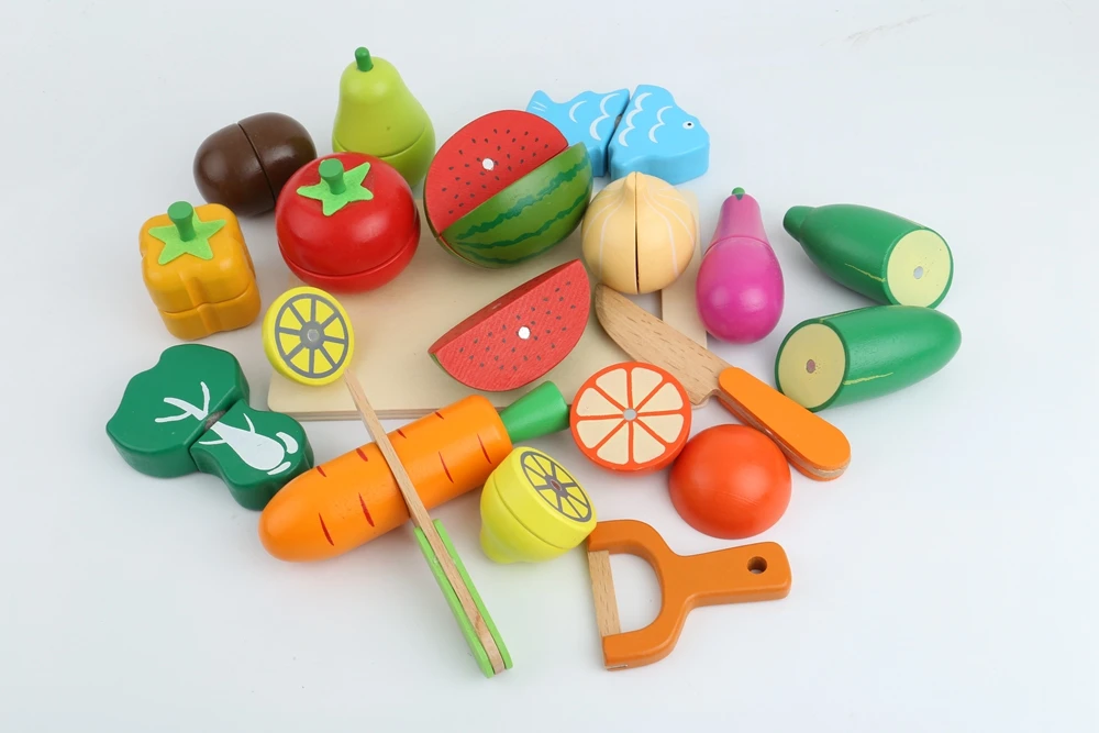 Детские кухонные игрушки, деревянная игрушка для вырезания больших фруктов, овощей, миниатюрная еда для девочек, кухонный набор, Детские Ранние развивающие игрушки