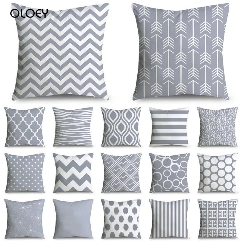 45*45 см, серые полосатые геометрические наволочки, искусственная наволочка для украшения дома, спальни, отеля, спинки сиденья автомобиля, декоративная наволочка