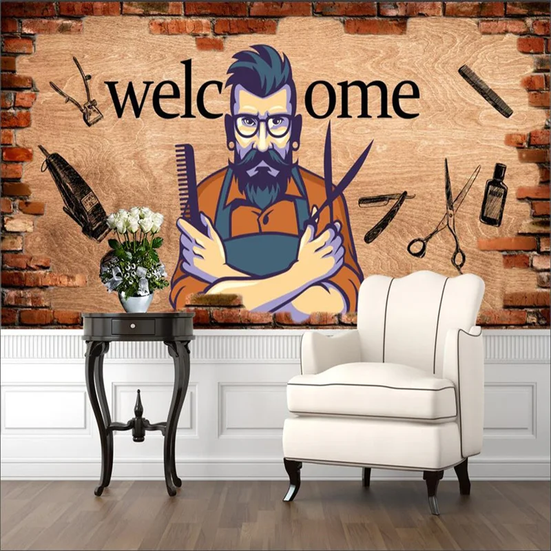 Пользовательские Парикмахерская настенная бумага 3D мужские волосы дизайн мужской салон фон настенная бумага промышленный Декор Papel де Parede 3D