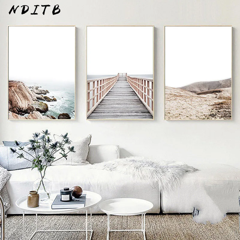 Картина с изображением скандинавских природных пейзажей, Настенная картина с изображением прибрежного моста, современный Декор для дома