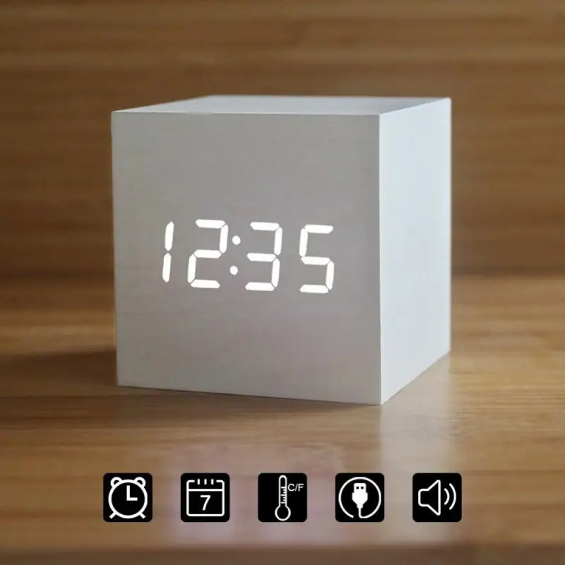 Деревянный светодиодный будильник, часы с голосовым управлением, цифровой Деревянный Будильник, электронный USBAAA, 60*60*60 мм