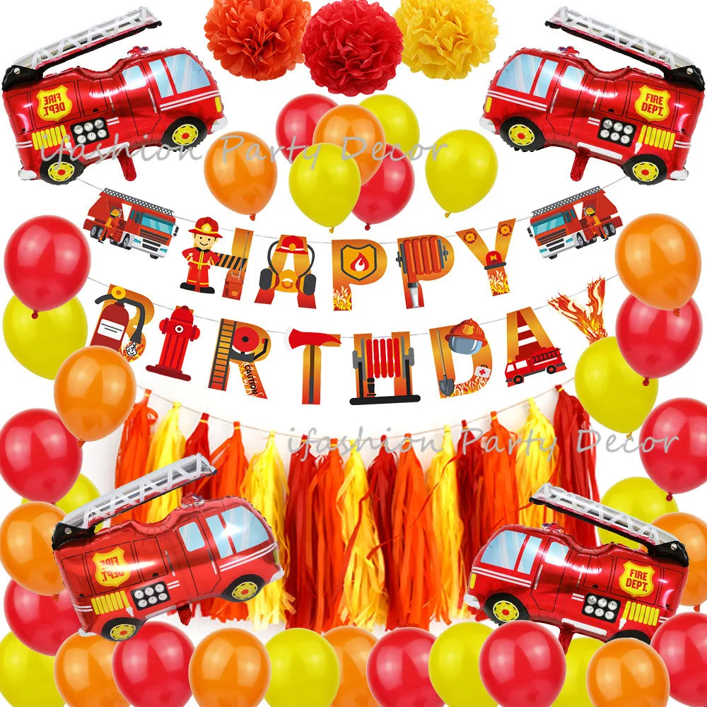 Пожарная машина, украшение для дня рождения, пожарный, пожарный, баннер для вечеринки, набор воздушных шаров