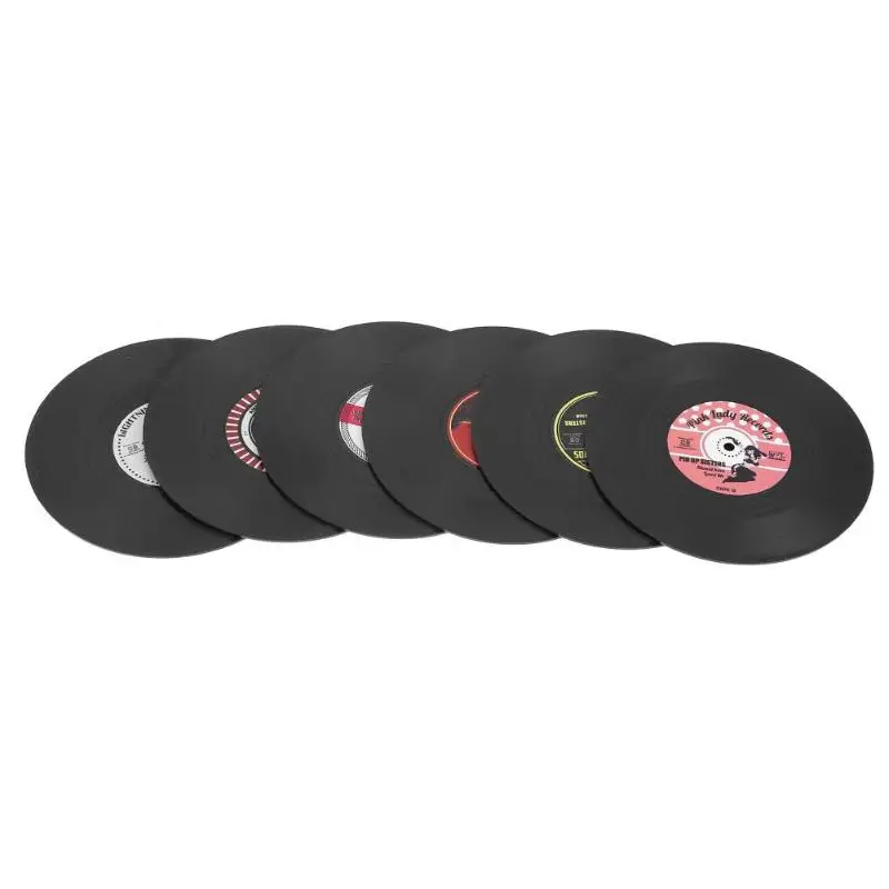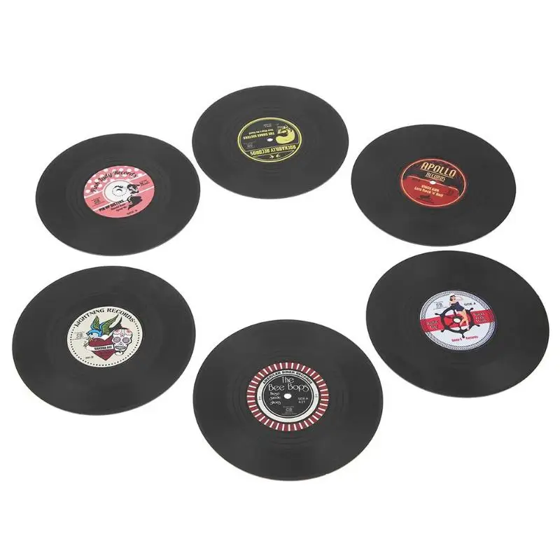 6 шт.компл. круглая противоскользящая термостойкая винтажная CD виниловая пластина для напитков, подставка под столовую посуду, чашка, кофейная кружка