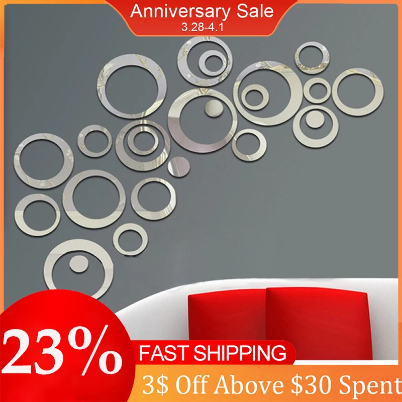 24 шт.компл. настенные наклейки с кругами в зеркальном стиле Съемная Виниловая Наклейка Настенная Наклейка домашний Декор акриловый Декор настенное искусство