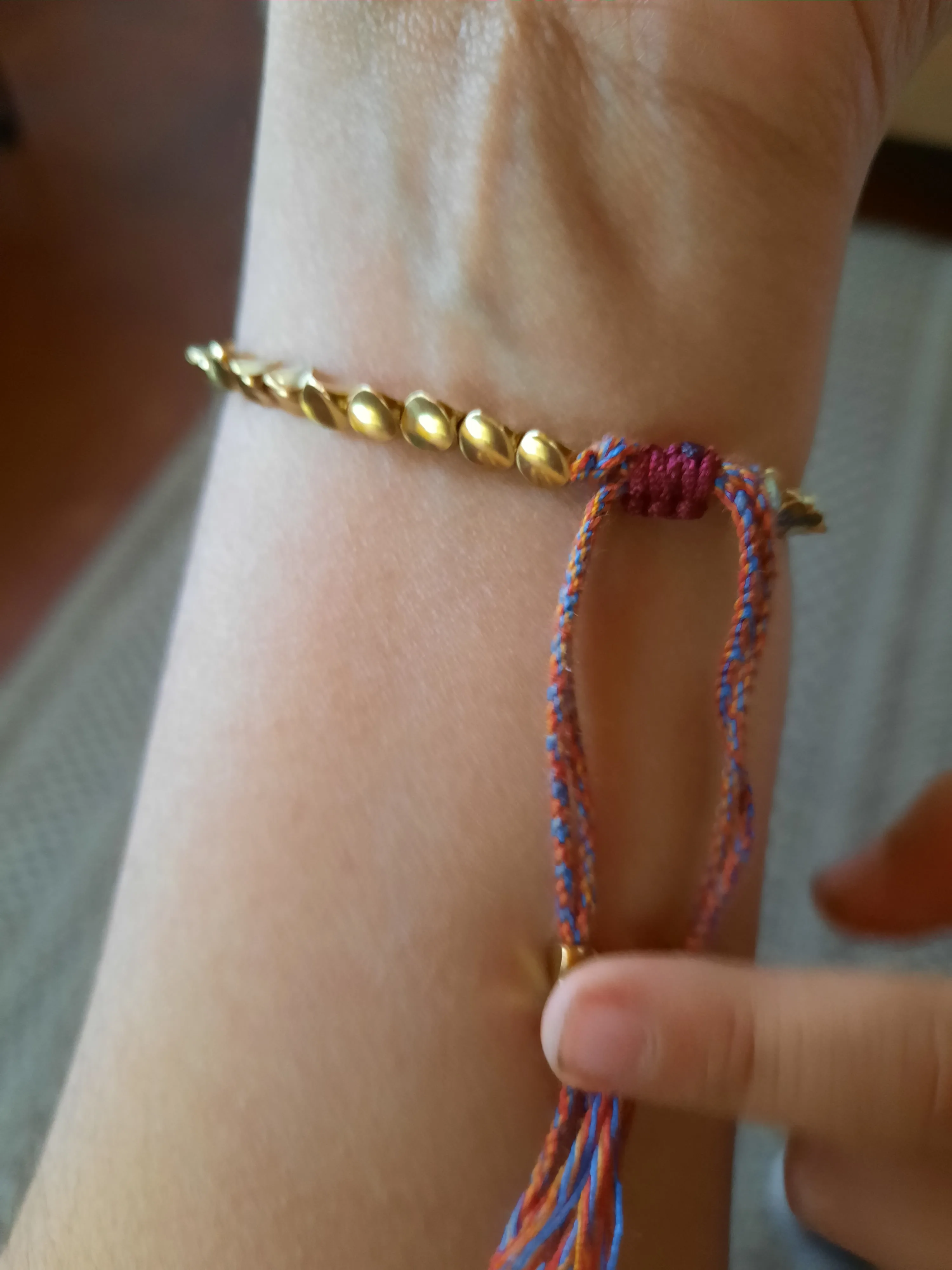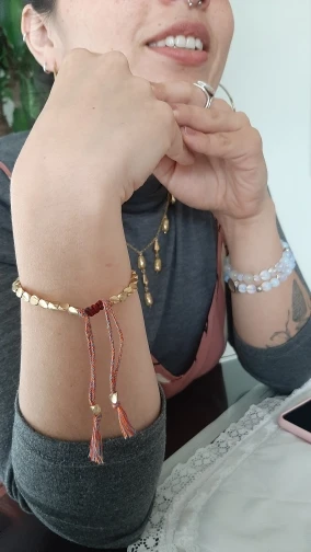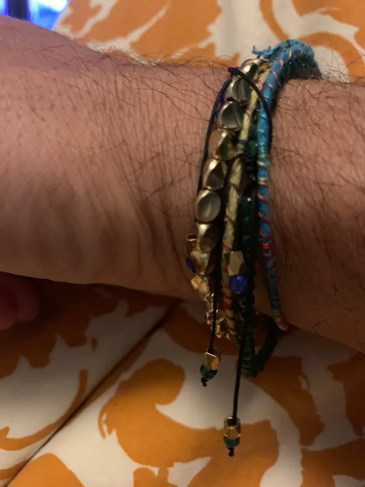 Я очень доволен. Плетеный хлопок мягкий, и браслет удобен в дополнение к красивой одежде. Легко настроить его на запястье самостоятельно. Спасибо за качественный товар!