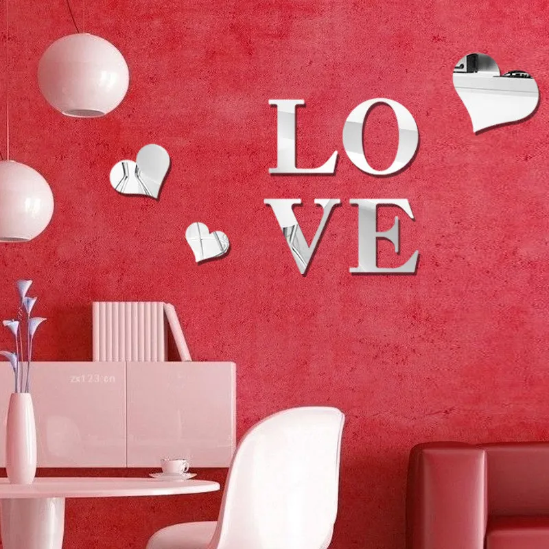 3 цвета, модная рамка в виде сердца и надписи, художественные зеркальные наклейки на стену, детская спальня, 3D украшения для стен сделай сам, съемное искусство