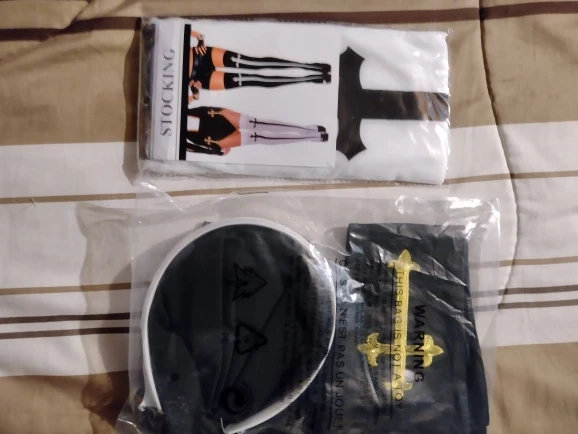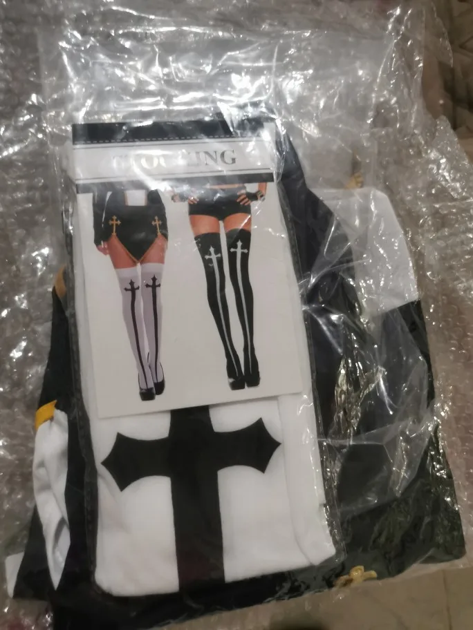 костюм очень хороший за исключением чулков они видно все одного размера и сомнительного качества! сам костюм качества намного лучше! всё пришло во время проблем никаких не было! советую брать без чулков даже если вы среднего телосложения они вам будут жать так как маленькие