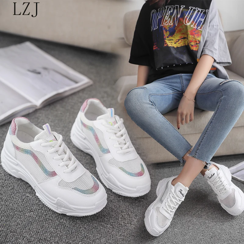 Кроссовки женские из дышащего сетчатого материала, повседневная спортивная обувь для ходьбы, плоская подошва, спортивные, 2019