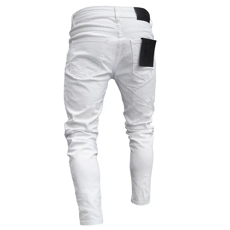 Джинсы мужские зауженные рваные, брюки из денима стрейч, с вышивкой, с дырками, брюки в байкерском стиле, белые, синие, черные
