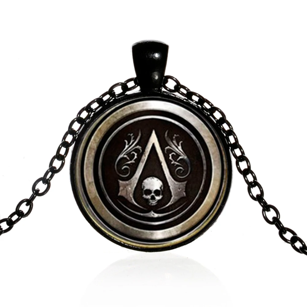 Ожерелье со знаком в стиле стимпанк и игры, 2019, готическая Черная цепочка, индивидуальная кулон со стеклянным куполом, модные мужские ювелирные изделия для игр