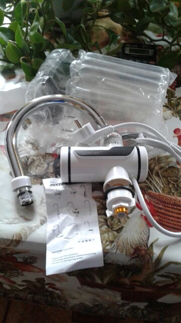 Кран отличный, пришёл быстро, хорошо упакованный, ничего повредилось. Будьте готовы к тому, что инструкция на русском переведена видимо гугл-переводчиком, но это не критично, установка и так очень простая. С российскими трубами отлично соединяется даже без обмотки. Греет на минимальной подаче воды даже до кипятка, на чуть сильнее горячая, на более средней просто тёплая, помыть руки и посуду отлично сгодится. Нагревается очень быстро, за несколько секунд. Шнур довольно короткий, при использовании не греется, спокойно работает с удлиннителем. Вода в часть с электроникой пока не попадала, хотя отвинчивается легко. Покупкой довольна, большое спасибо продавцу!