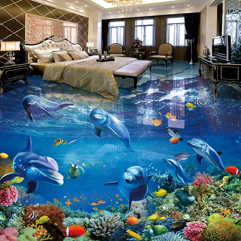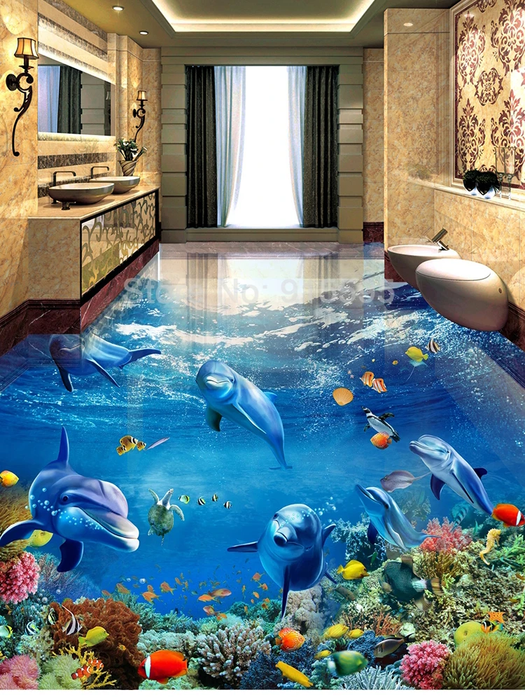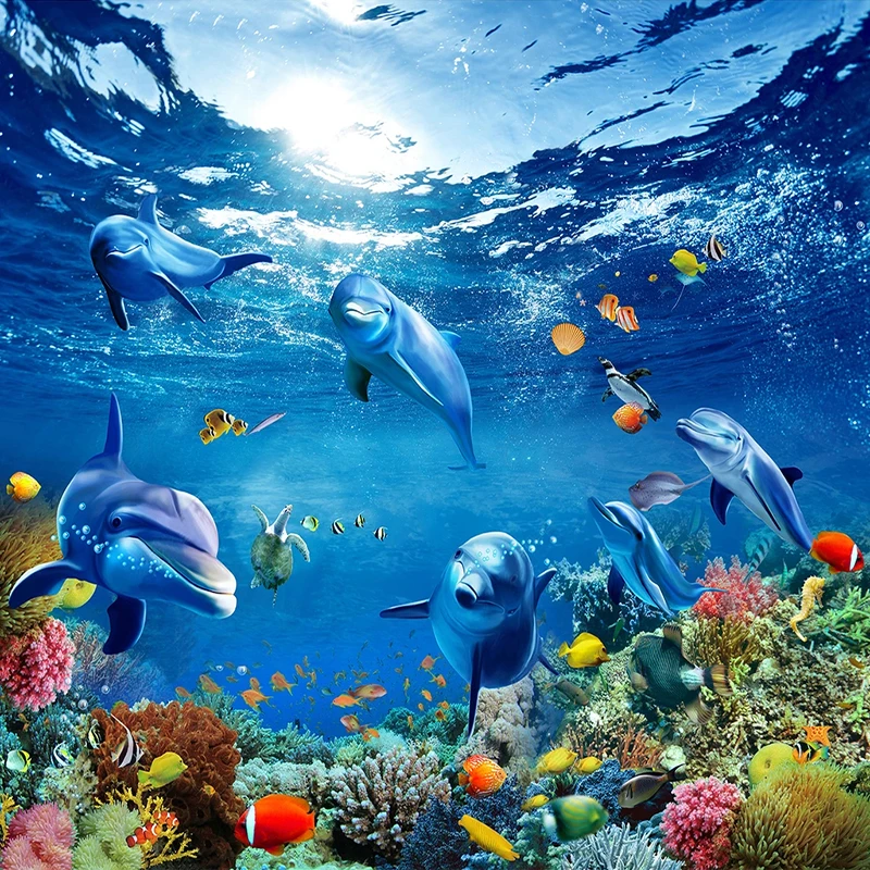 Пользовательский 3D напольный рисунок, фотообои, подводный мир, дельфин, гостиная, ванная, ПВХ, водонепроницаемая роспись, Papel De Parede 3D