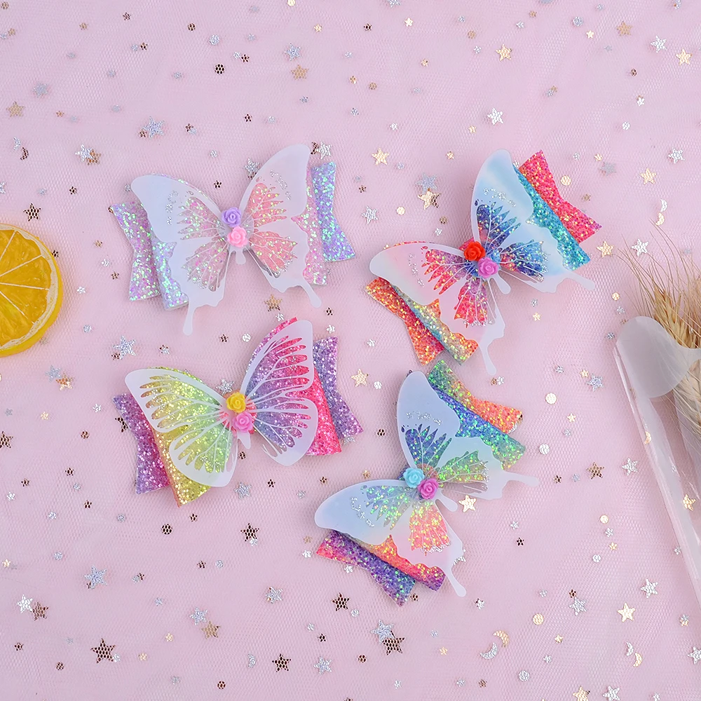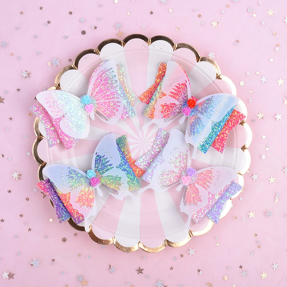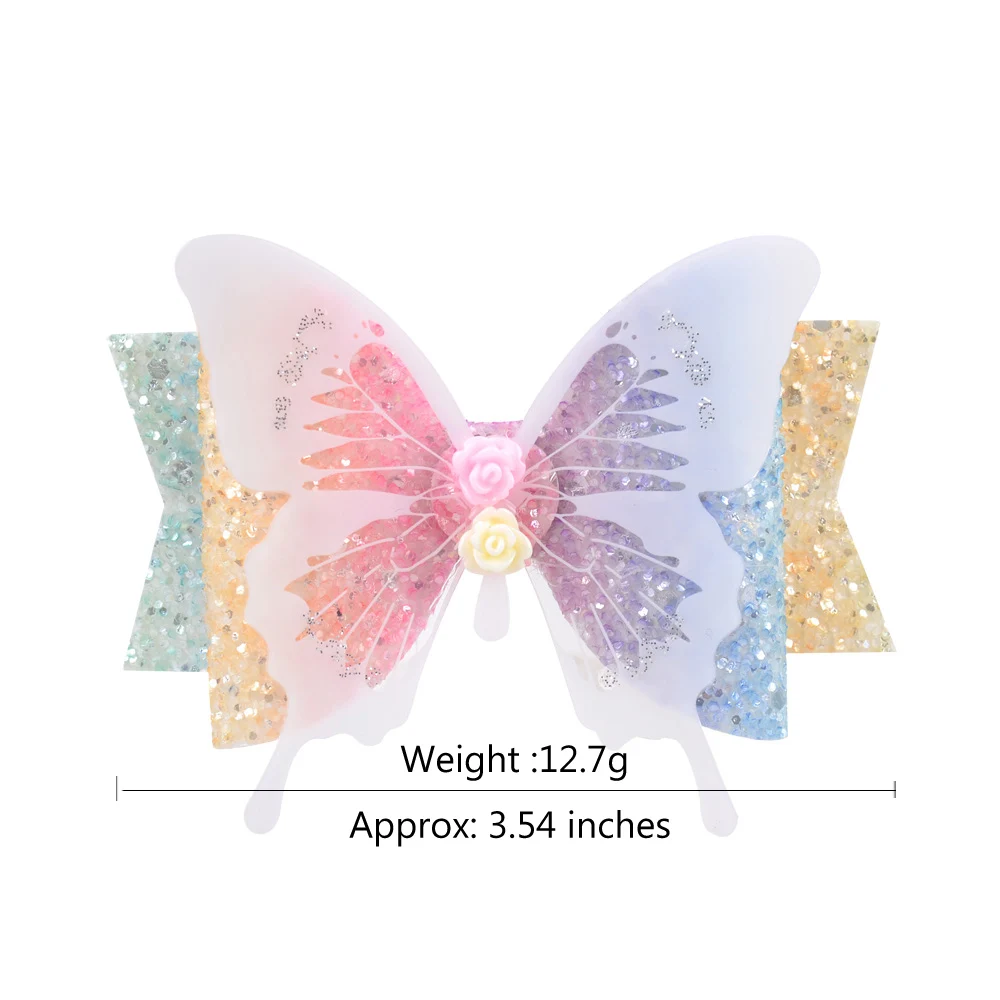 3,5 дюймов, с изображением милой бабочки заколки для волос с зажимом для маленьких девочек; Блестящие заколки для волос заколка для волос аксессуары для волос 091