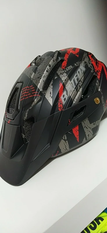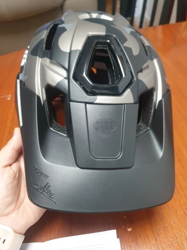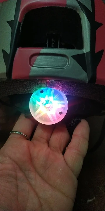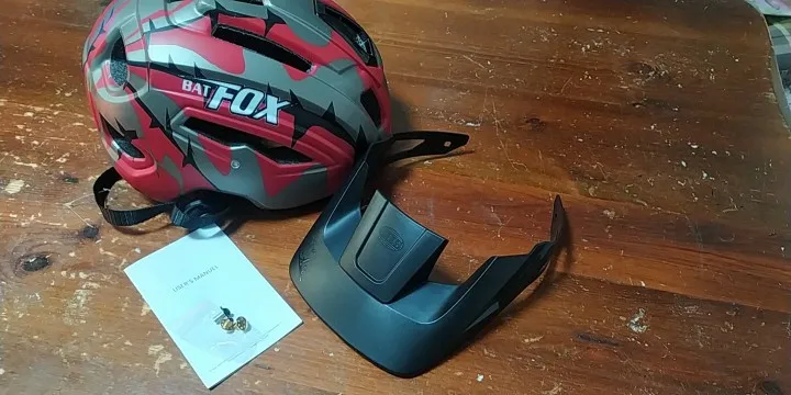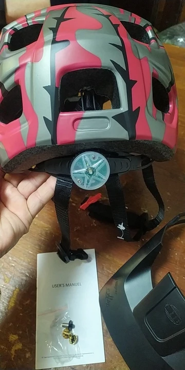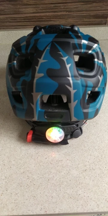 Велосипедный шлем имеет очень красивый дизайн и может хорошо носить. Это красный светодиод в 3 различных режимах освещения. Козырек был сбоку, слегка Согнут, но после второго начала сидеть там с помощью этого прилагаемого винта зафиксирован. Красивый шлем.