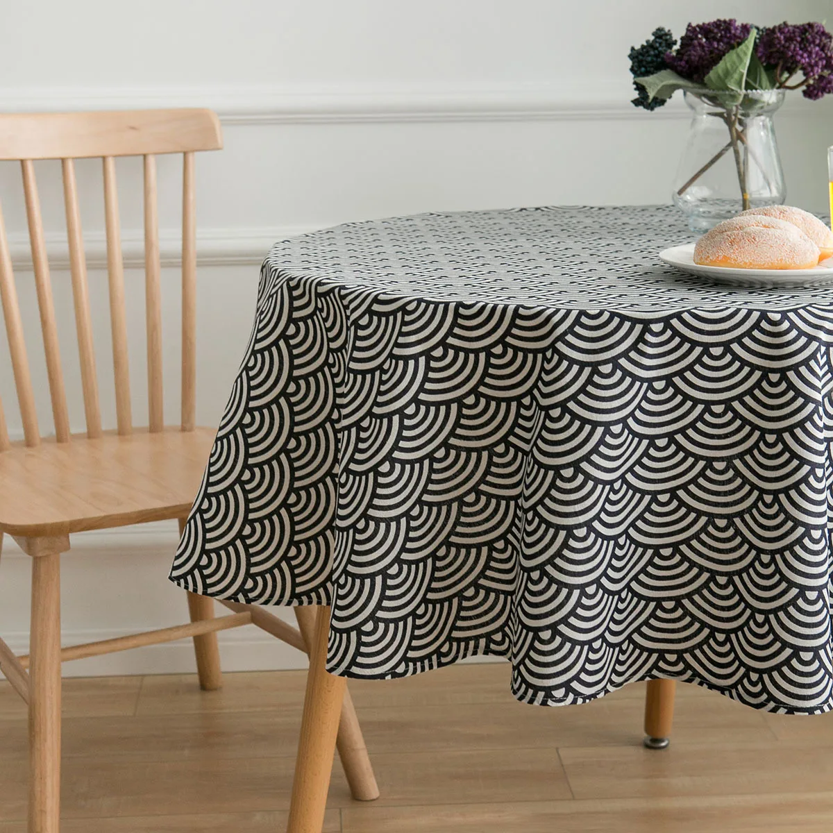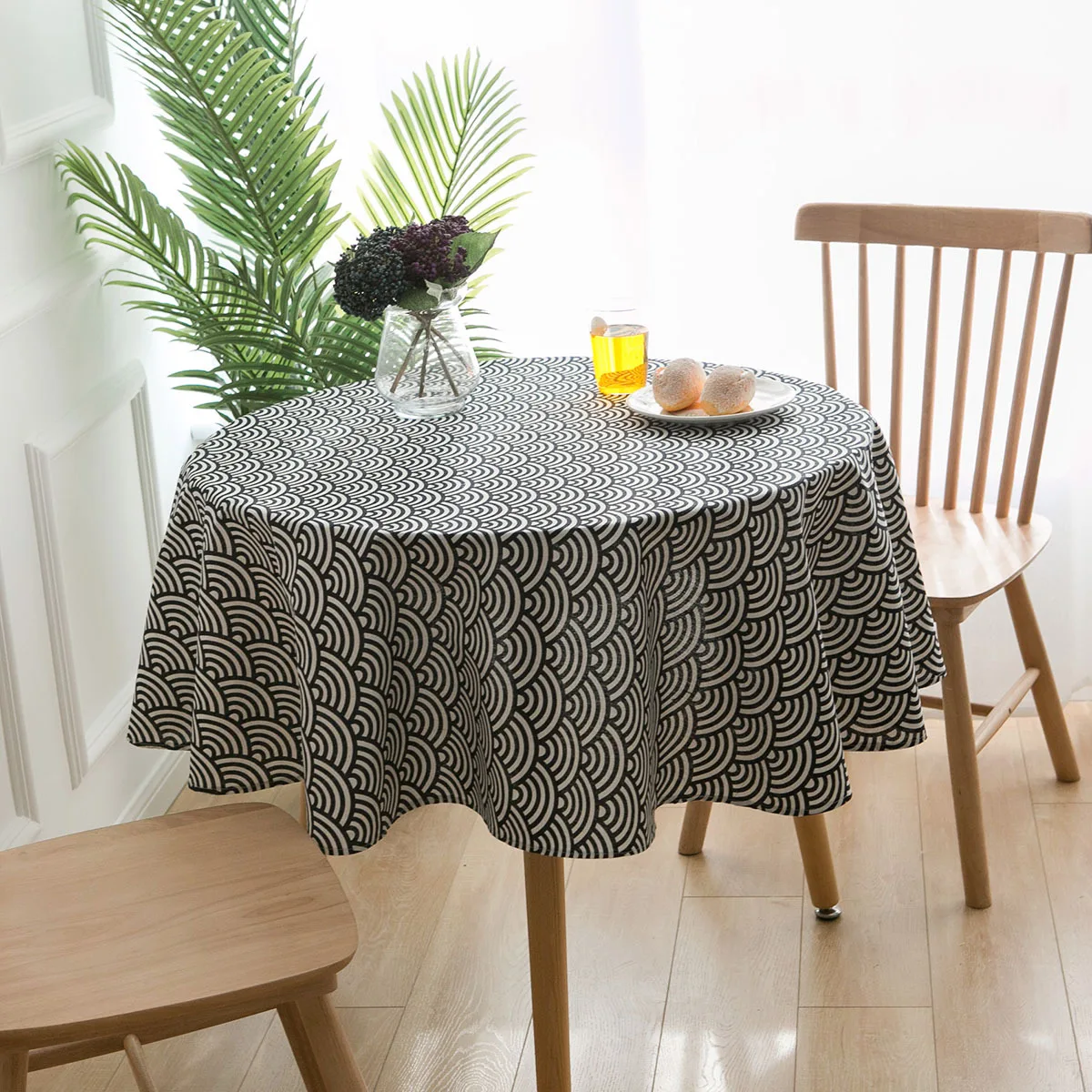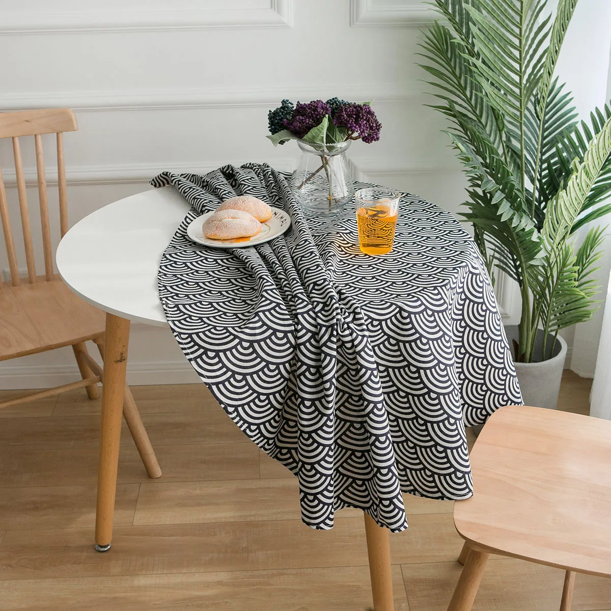 Скатерть круглая из хлопка и льна в японском стиле, декоративное покрытие стола темно-синего цвета для обеденного стола вечерние, банкета, улицы