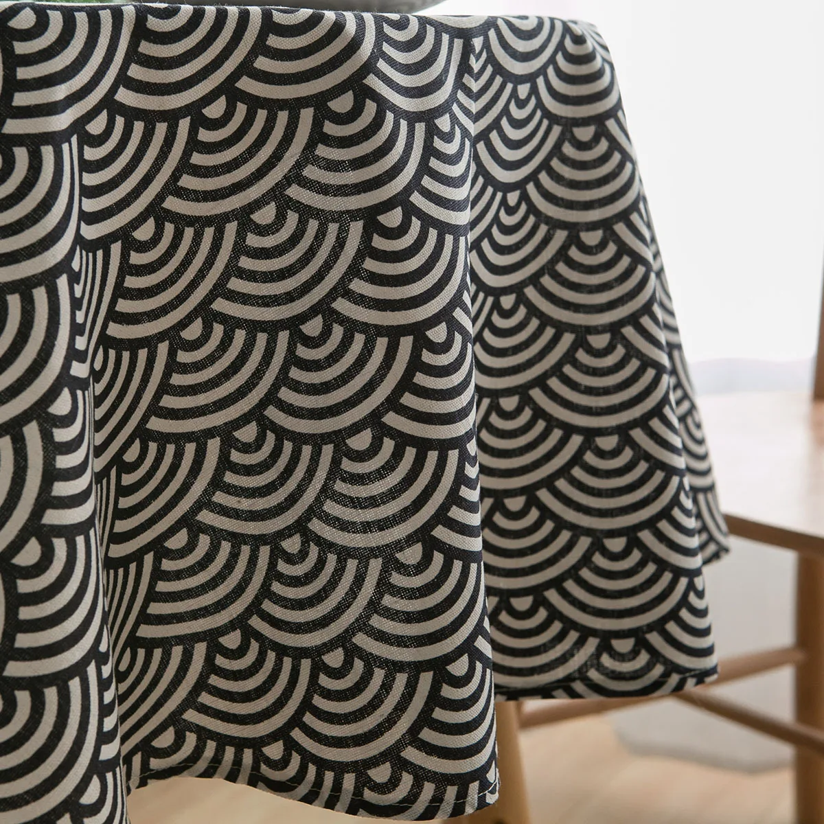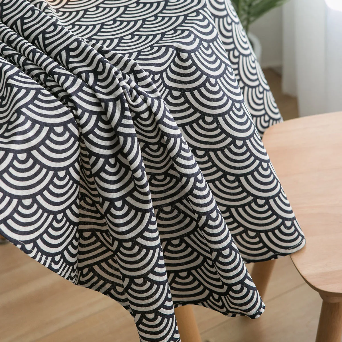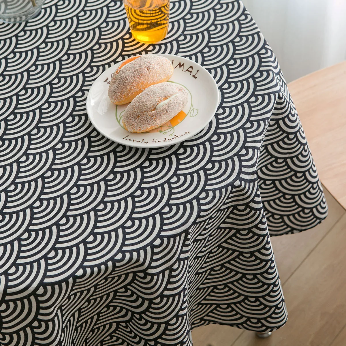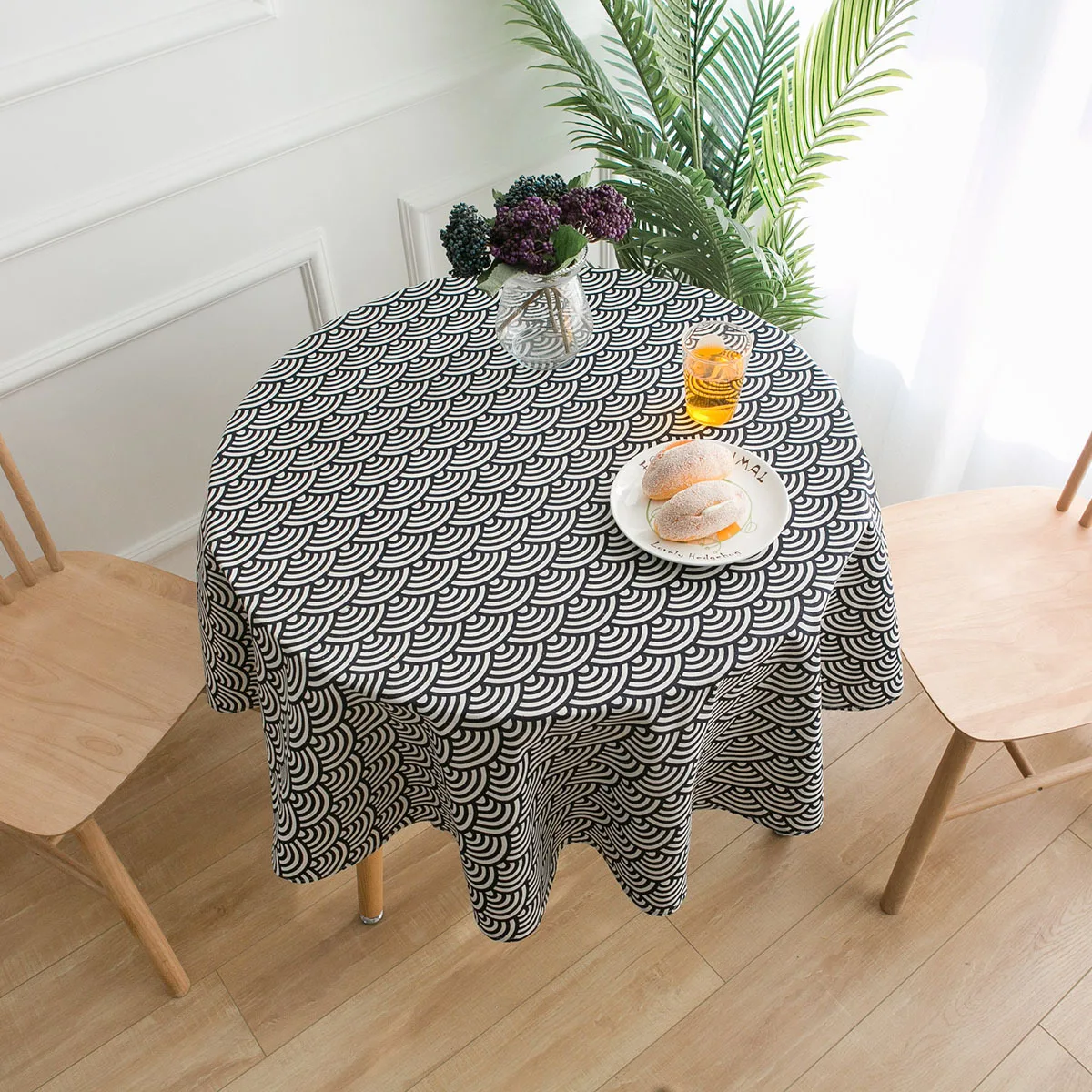 Скатерть круглая из хлопка и льна в японском стиле, декоративное покрытие стола темно-синего цвета для обеденного стола вечерние, банкета, улицы