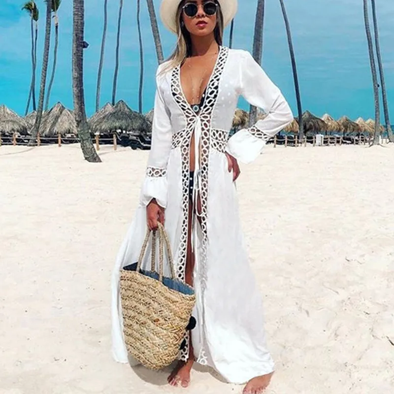 Сексуальная накидка на бикини, длинная белая туника, повседневное л...