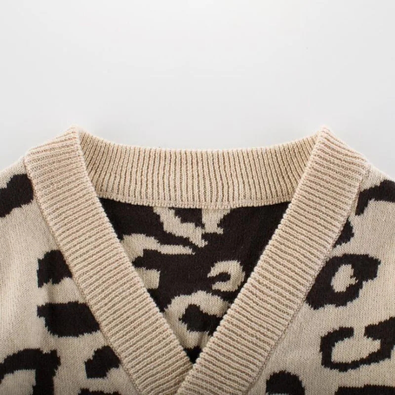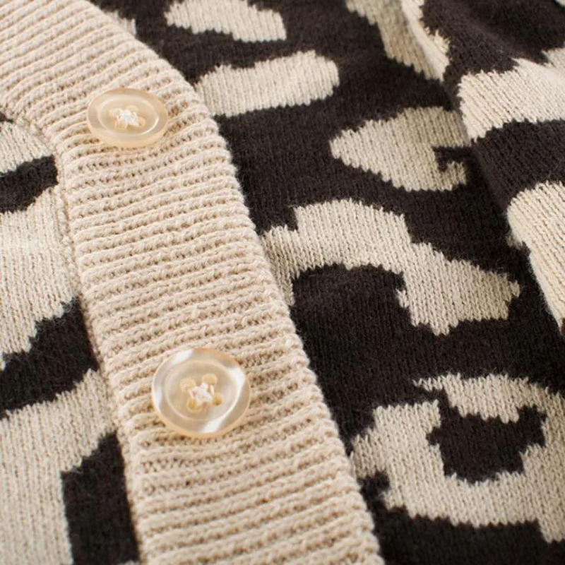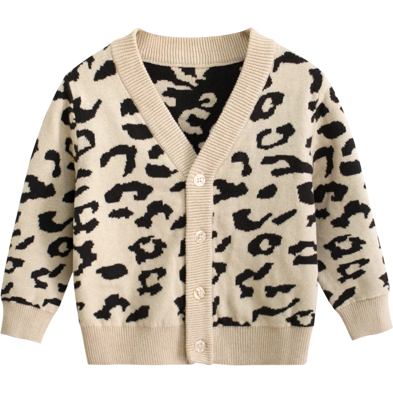 Детский вязаный свитер с леопардовым принтом, куртка с v-образным вырезом и длинными рукавами, кардиган для мальчиков и девочек, детская осенне-зимняя верхняя одежда