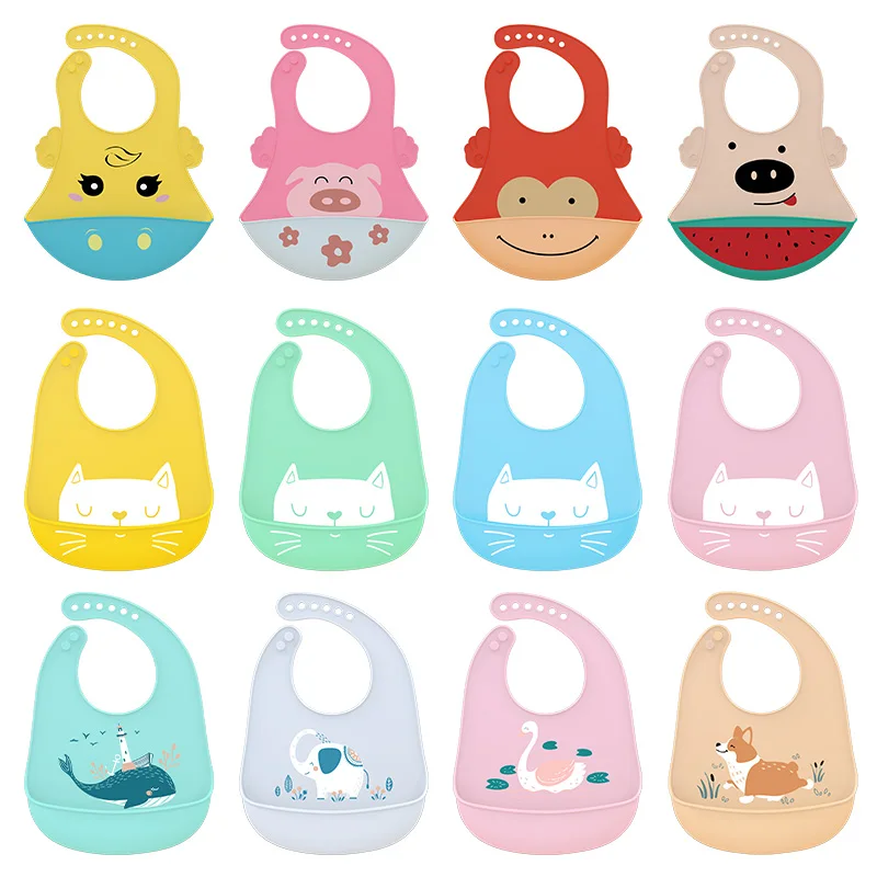 Детские Водонепроницаемые нагрудники с мультяшным принтом, мягкие силиконовые нагрудники с животным рисунком для девочек и мальчиков, регулируемый детский нагрудник