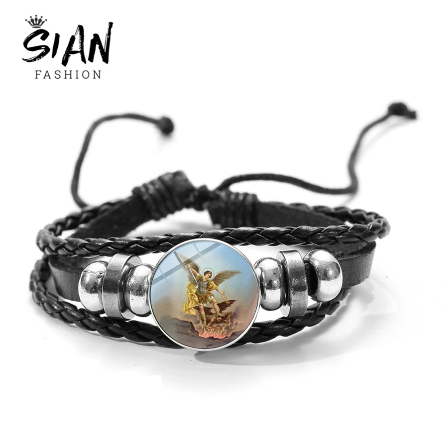 Кожаные браслеты с кабошоном, многослойные браслеты с изображением ...