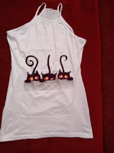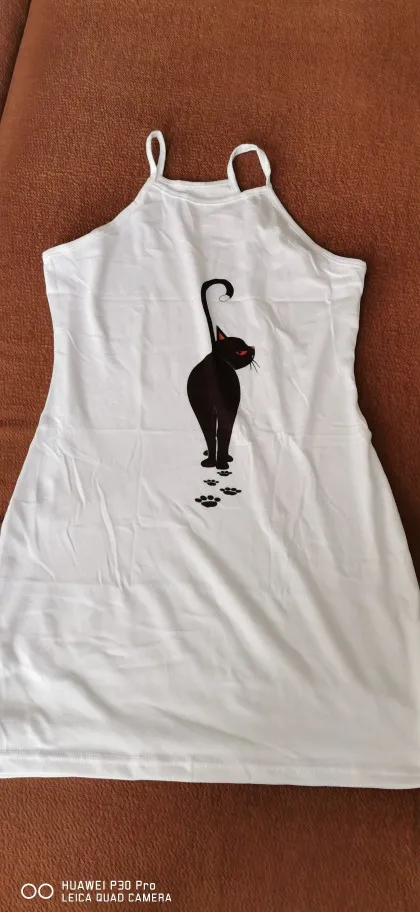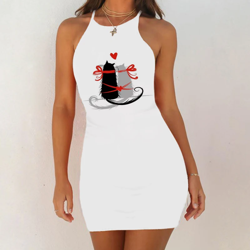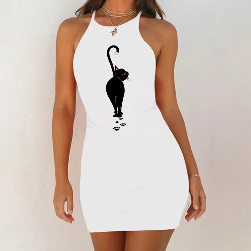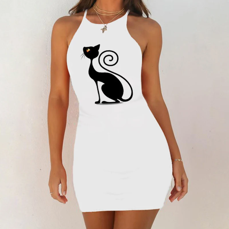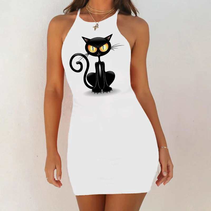 Ночная рубашка женская, без рукавов, с принтом черной кошки, 2020