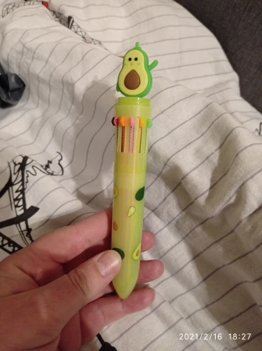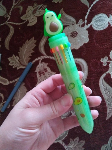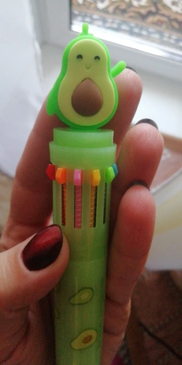 Сейчас бум на авокадо) Купила 2 штуки сыну, он во 2 классе и дочке моей подружке подарим, она любитель авокадо). Ручка прикольная. Все стержни пишут хорошо. Для письма конечно толстая, не очень удобно писать, а вот для рисунков, самое то Благодарю и рекомендую продавца!
