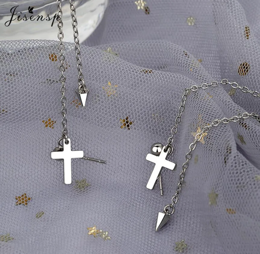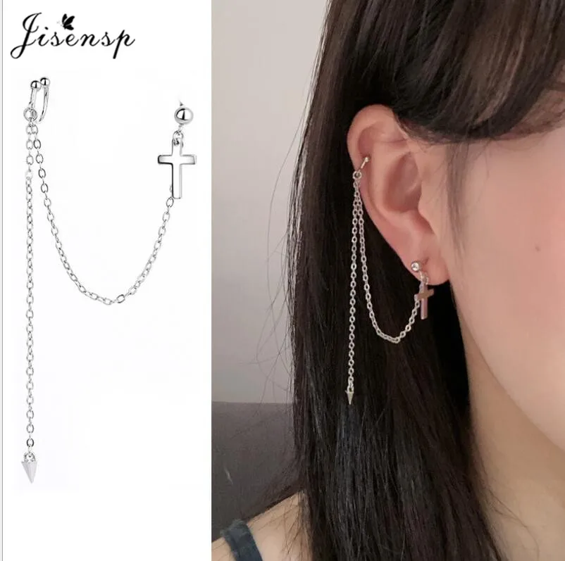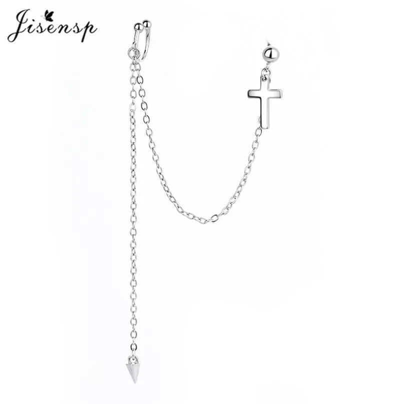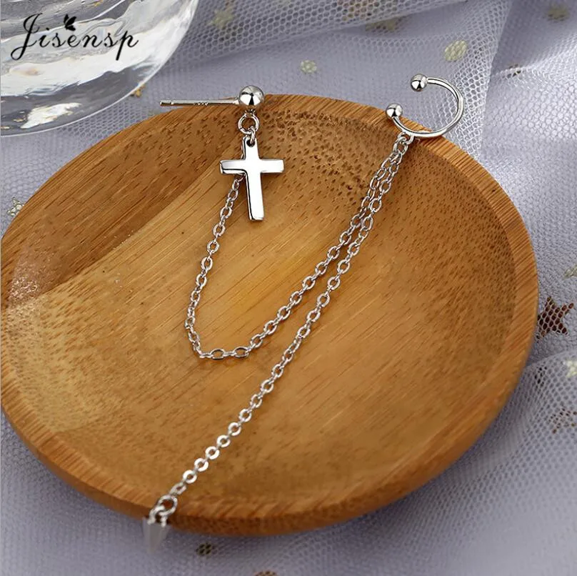 Кафф Jisensp в стиле готика, панк, с крестом, серебряного цвета, модные украшения для женщин, Винтажные серьги-цепочки с кисточками, рождественский подарок