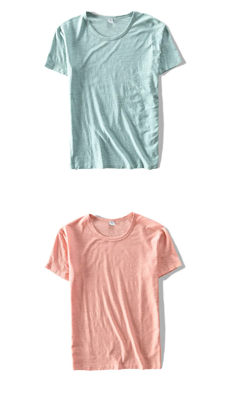 Мужская футболка с коротким рукавом, летняя, хлопковая, розовая