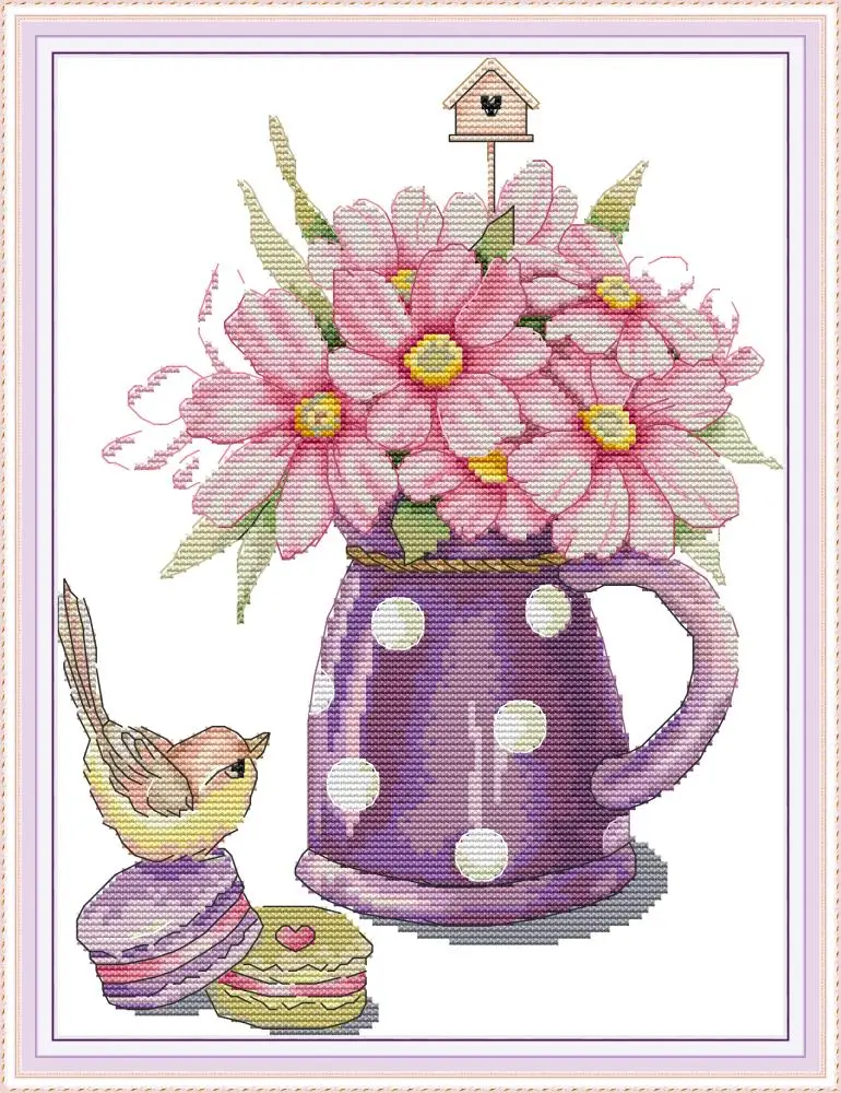 Вышивка крестиком в виде птицы и вазы, 11CT, ткань с принтом, 14CT, DMC, Счетный набор крестиков, вышивка, рукоделие, домашний декор