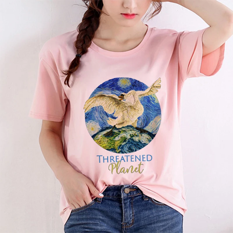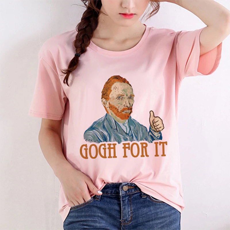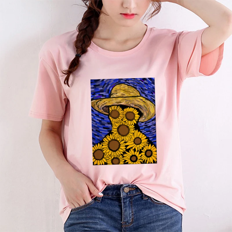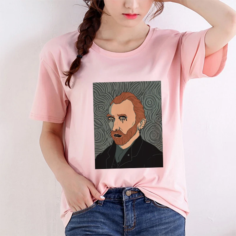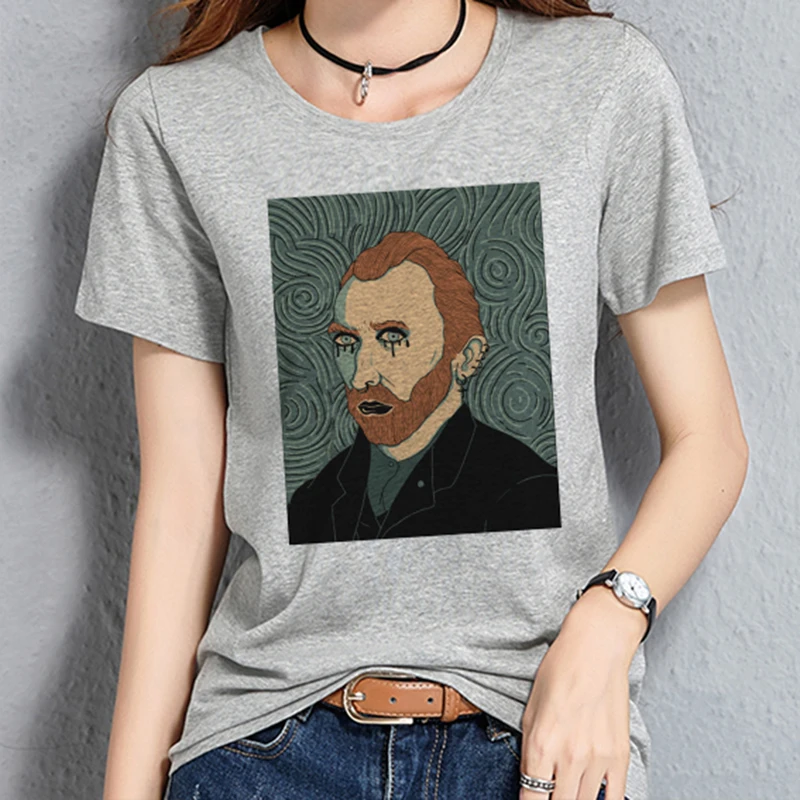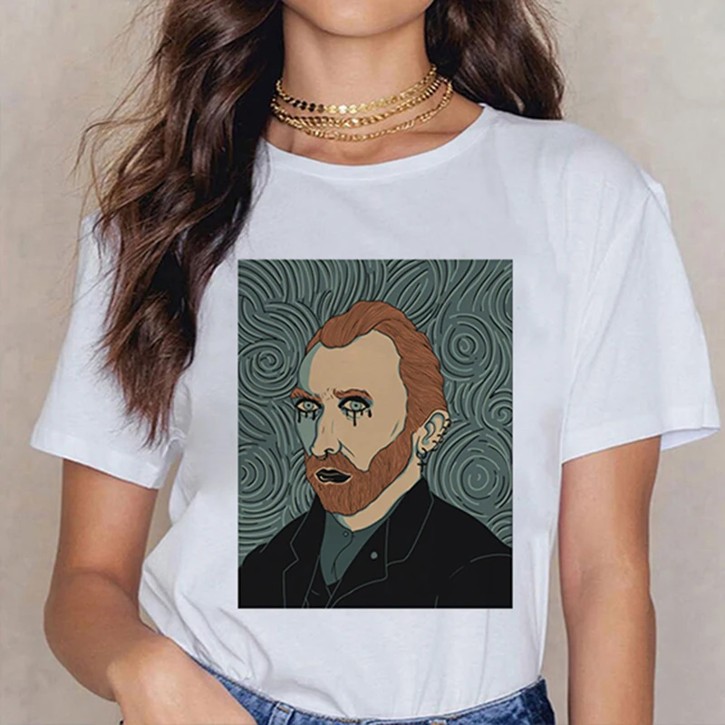 Женская футболка с принтом Ван Гога, летние женские Топы в стиле Харадзюку, футболки для девушек с зеленым вырезом, уличная одежда