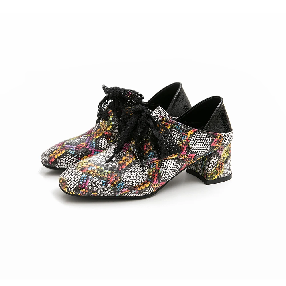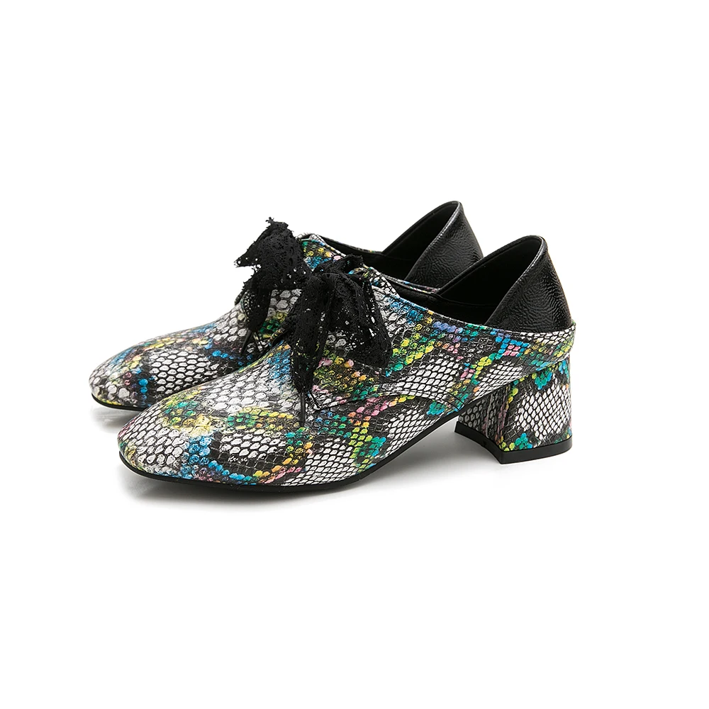 Броги женские демисезонные на плоской подошве со змеиным принтом, и...