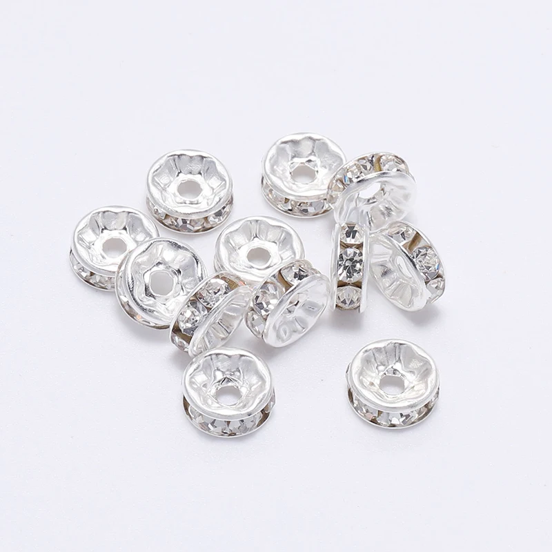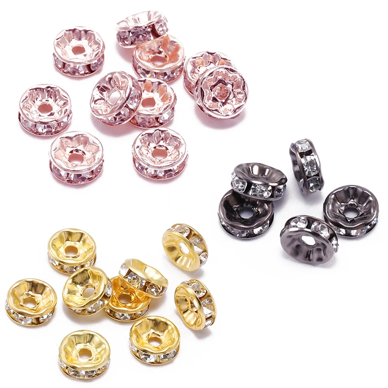 Бусины-подвески для украшений сделай сам, золотистые и Серебристые Стразы, свободный разделитель бисер, аксессуары для изготовления ювелирных изделий, 50 шт., 4, 6, 8, 10, 12 мм