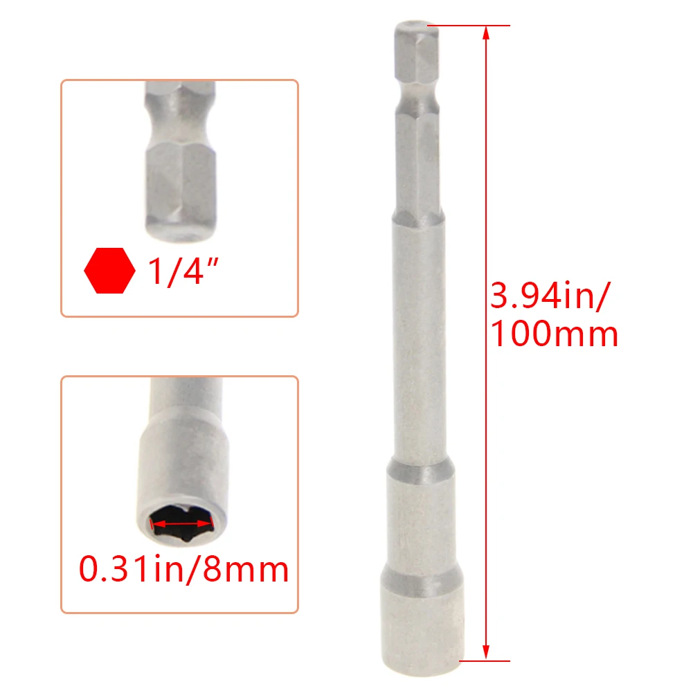 1/4 дюймовый размер хвостовика,8 мм/10 ммРазмер шестигранного гнезда, драйвер шестигранной гайки.