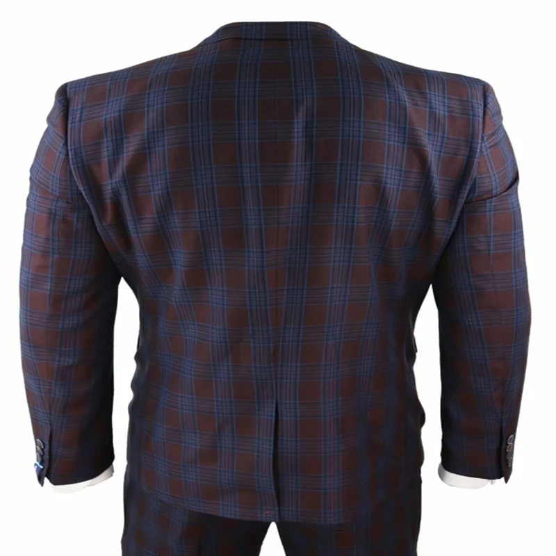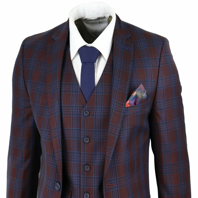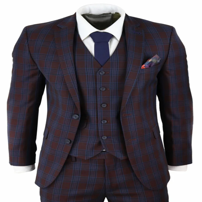 Мужские костюмы Гарри, коричневые, винно-синие, в клетку, 3 предмета, облегающие, для свадьбы, выпускного, вечерние, Ретро стиль, 2020