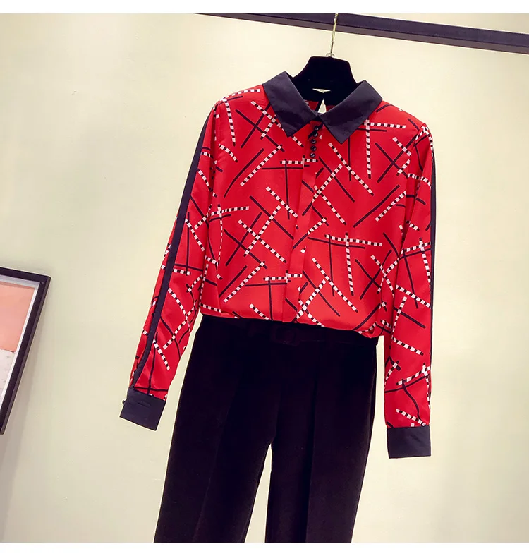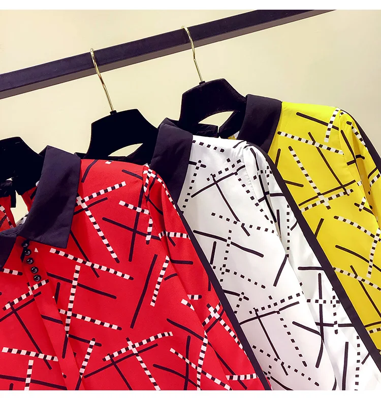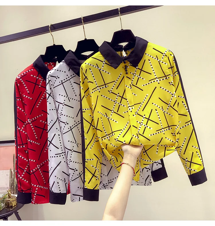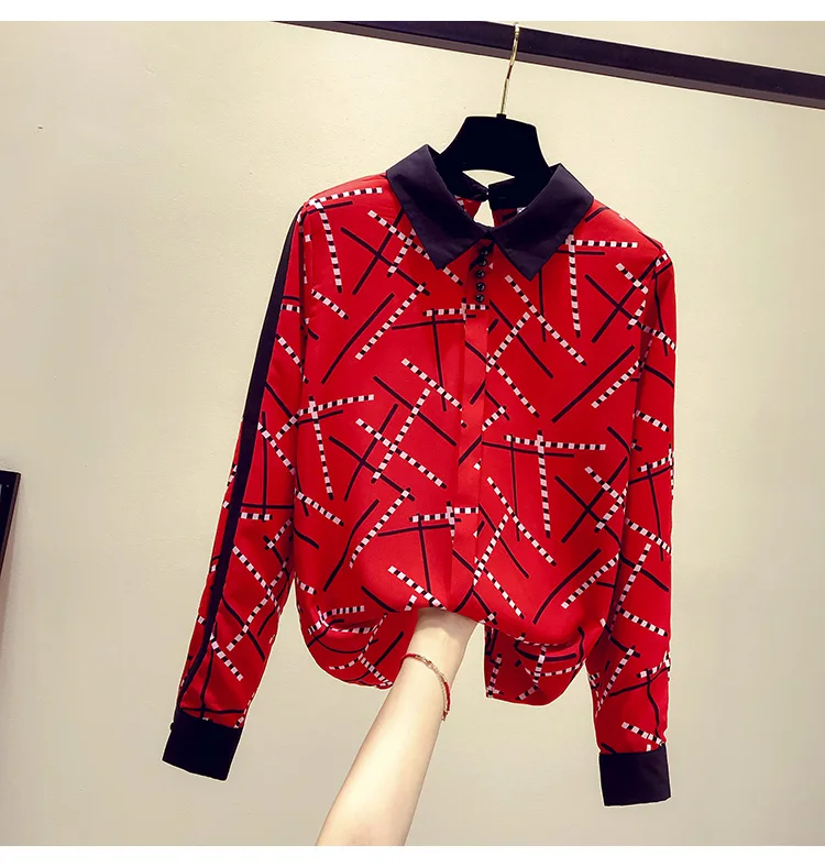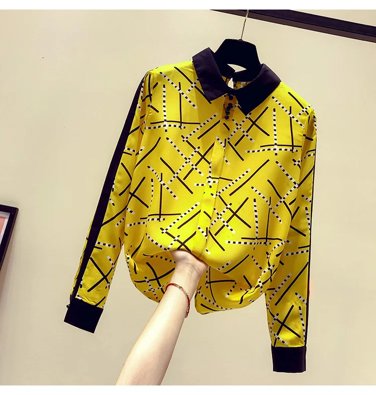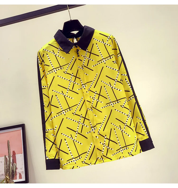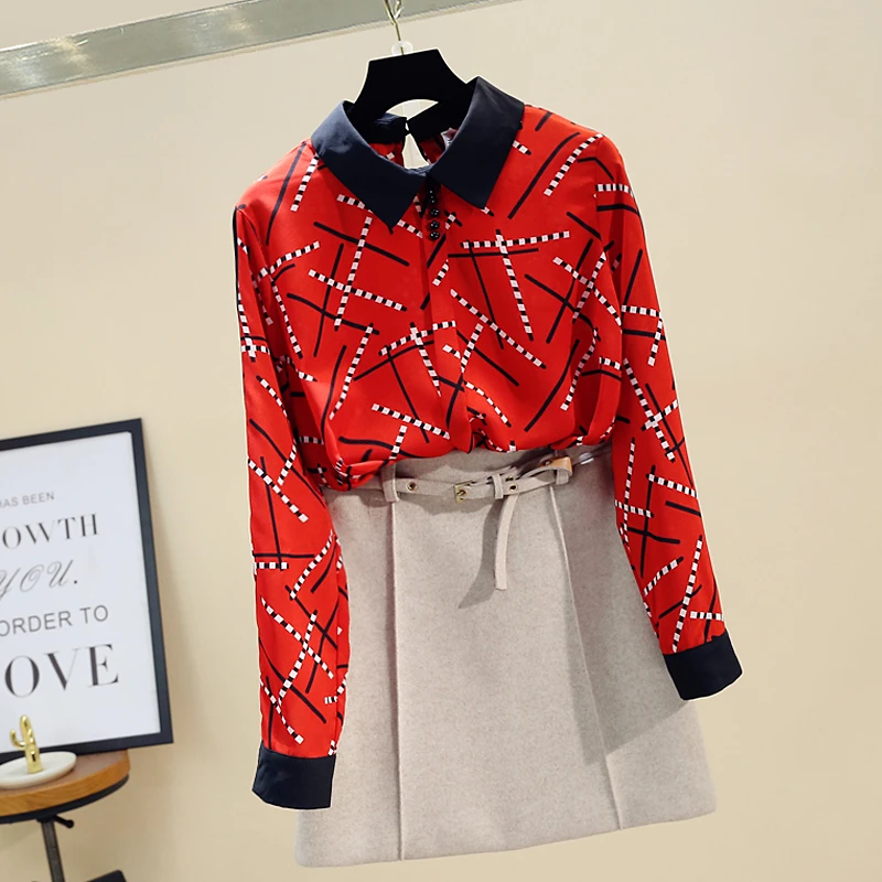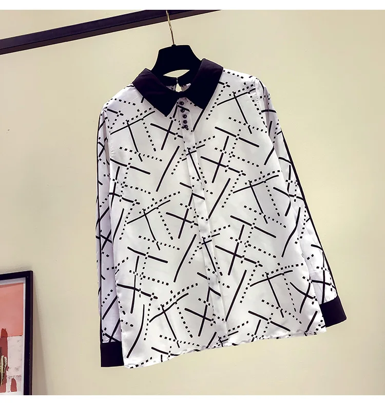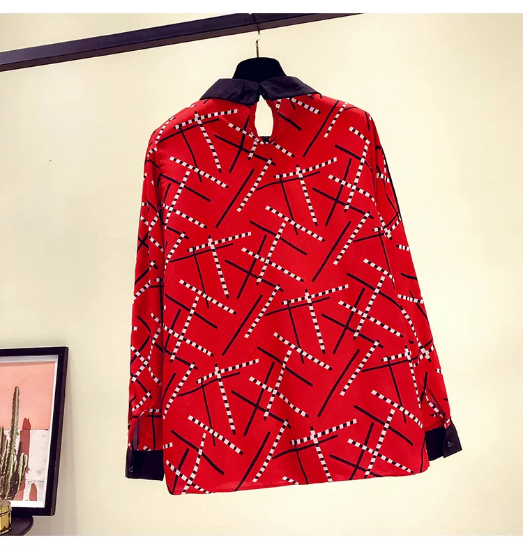 Наименование товара:Весенне-осенняя женская рубашка контрастных цветов с воротником Питер Пэн, шифоновая рубашка с принтом, женские блузки с длинными рукавами, GD235