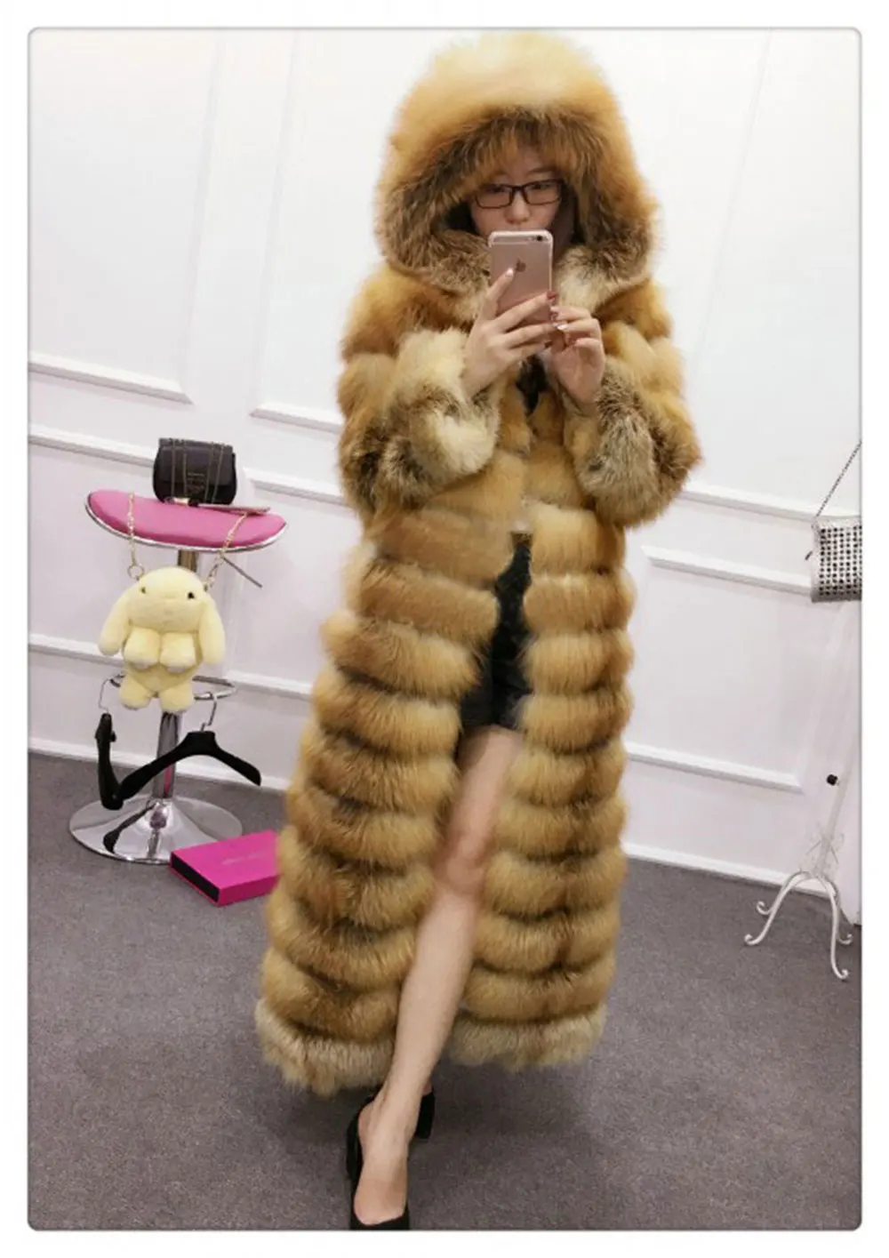 Роскошная Шуба из натурального Лисьего меха; Теплая; Плотная одежда; Женские сапоги с лисьим мехом верхняя одежда для детей модное пальто с мехом из натурального меха лисы для женщин-американском стиле, пальто с капюшоном, куртки