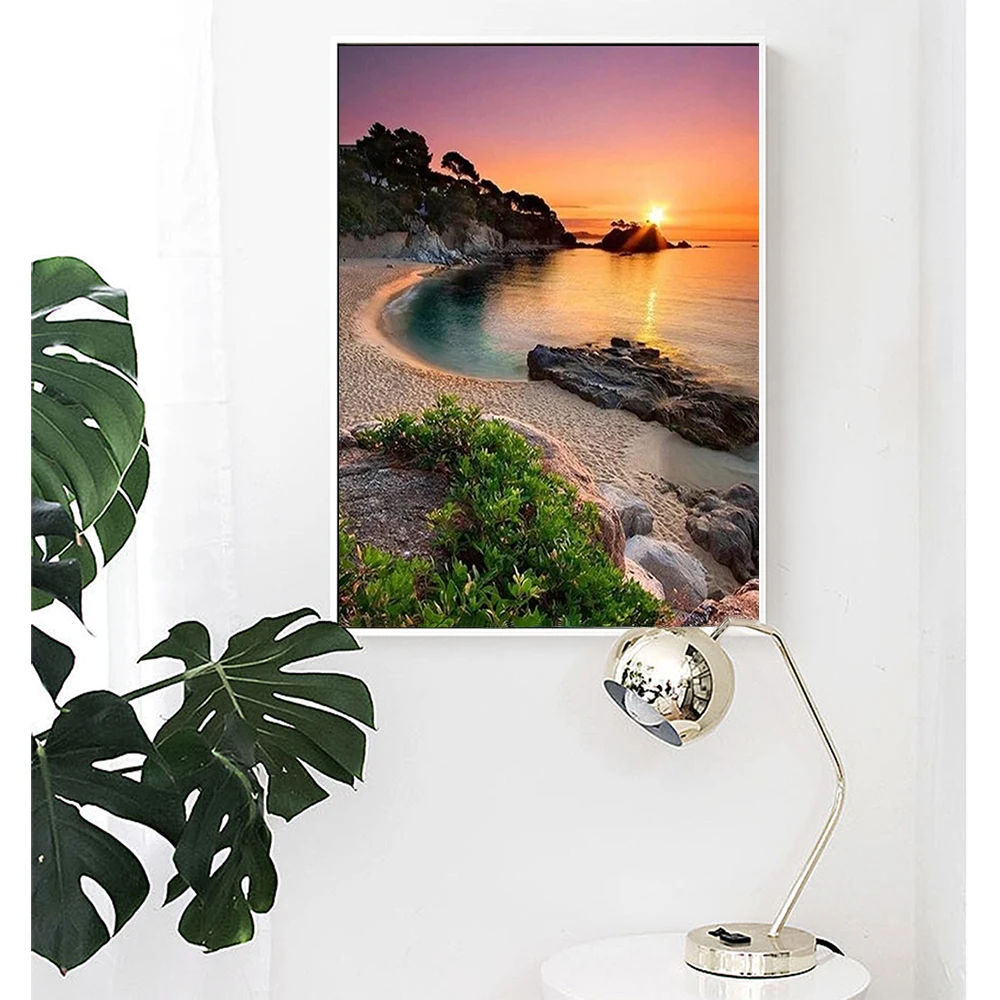 Алмазная живопись 5D, закат, искусство, стразы, море, алмазная выши...