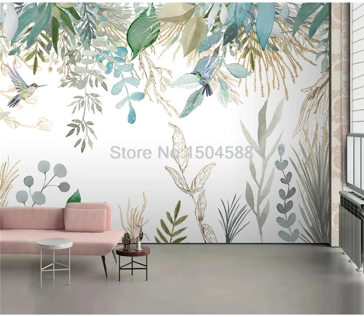 Фотообои, современные, ручная роспись, тропические растения, листья, цветы и птицы, водонепроницаемая настенная живопись для гостиной, спальни