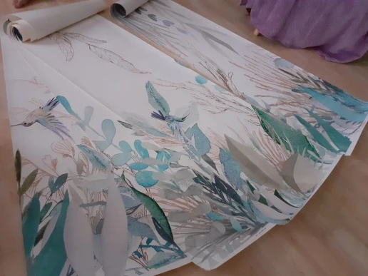 Фотообои ооочень понравились! Я выбрала моющиеся под шёлк. У нас несколько животных, так что на случай если запачкается, можно отмыть. Очень переживала, что будут похожи на обои шелкографию и с сильным блеском ещё как раньше клеили.. Но нет! Обои отличные, качество супер! Очень плотные, как очень плотный ватман, и реально текстура лицевая напоминает шёлковую ткань с совсем лёгким отблеском если попадает солнечный свет. Обои заказаны для новой квартиры в которой сейчас идёт ремонт. До поклейки ещё недели 3,так что потом дополню фоты. Шли почти 2 месяца до Москвы, совершенно не понятной доставкой, с полным отсутствием отслеживания. Нервы потрепела и себе и продавцу. К чести продавца, он всегда отвечал и успокаивал! Ну и в итоге все хорошо!) на одном полотне есть маленький брак, на белой части бопдовой краской запачкано. Но тьфу-тьфу это низ и скорей всего там будет или тумбочкой прикрыто или высоким плинтусом. Не страшно.