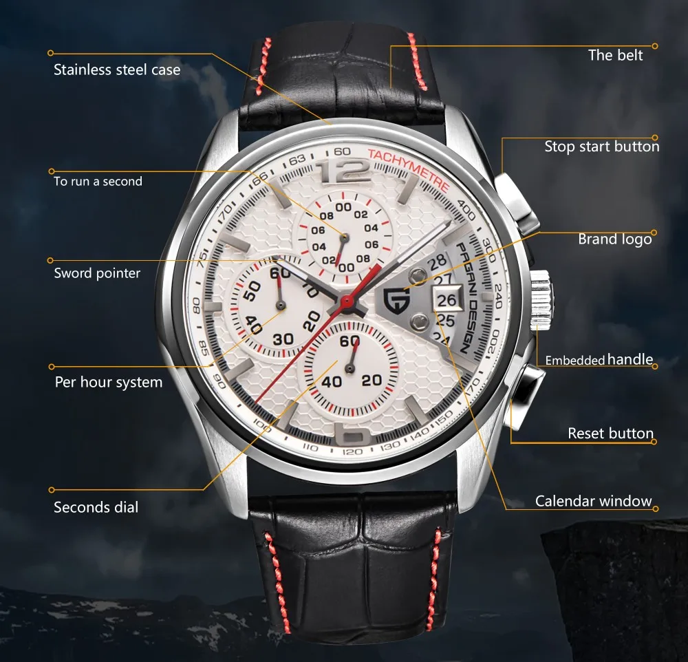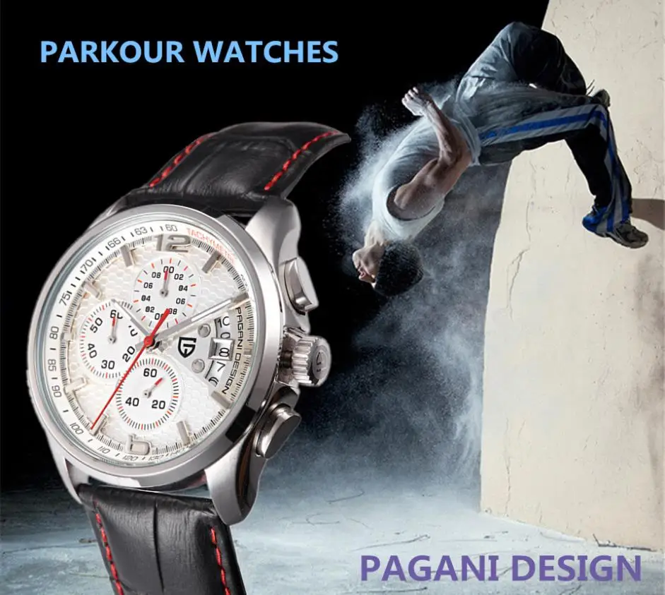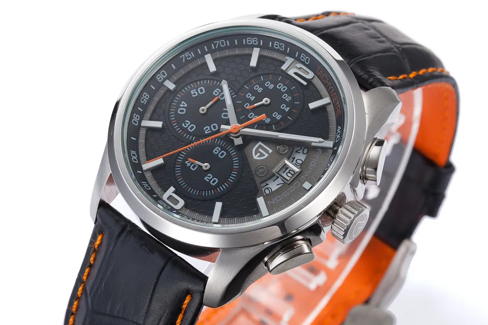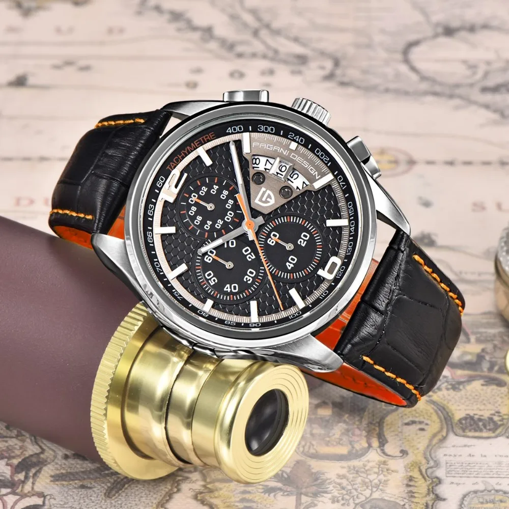 Часы наручные PAGANI DESIGN Мужские кварцевые, роскошные брендовые Модные Военные, с таймером и кожаным ремешком