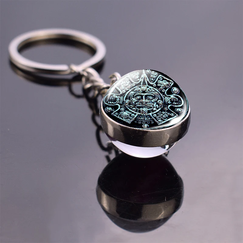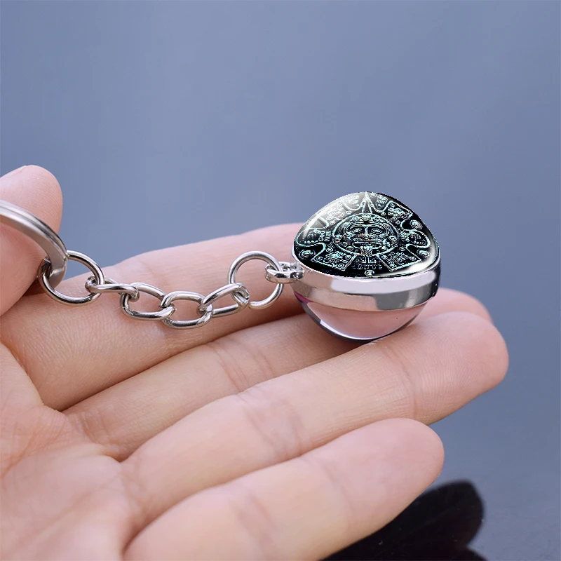 Ацтекский календарь, Мексиканский брелок для ключей, стеклянный шар, брелок для ключей, мужские Модные аксессуары