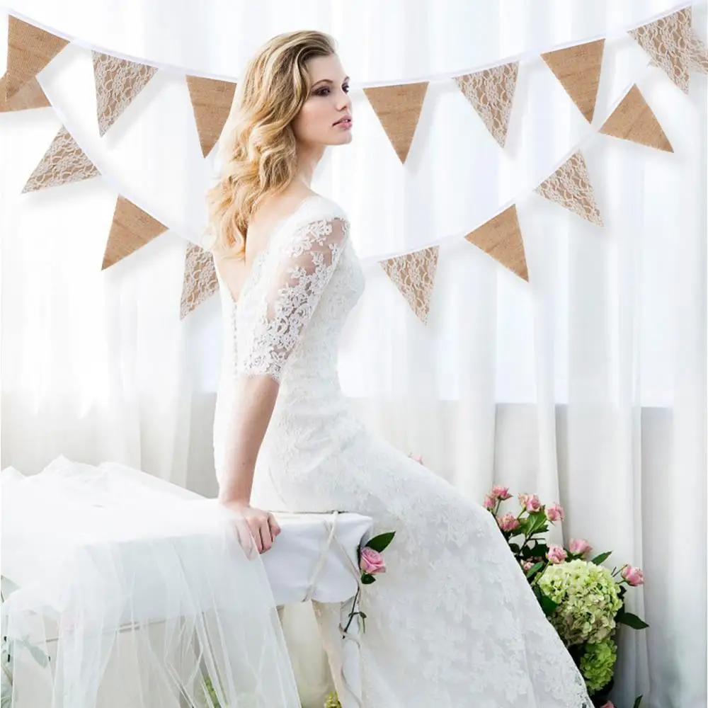 OurWarm свадебное украшение кружевная скатерть-Настольная дорожка из мешковины баннер фон лента вышивка винтажная Свадебная вечеринка DIY принадлежности