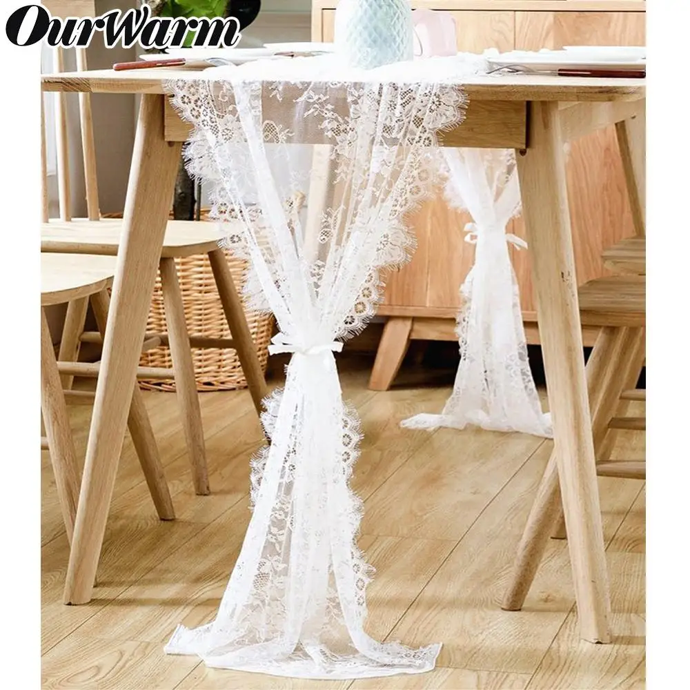 Кружевная настольная дорожка OurWarm, свадебное украшение, баннер из мешковины, фоновая лента с вышивкой, винтажные принадлежности для свадебной вечеринки сделай сам