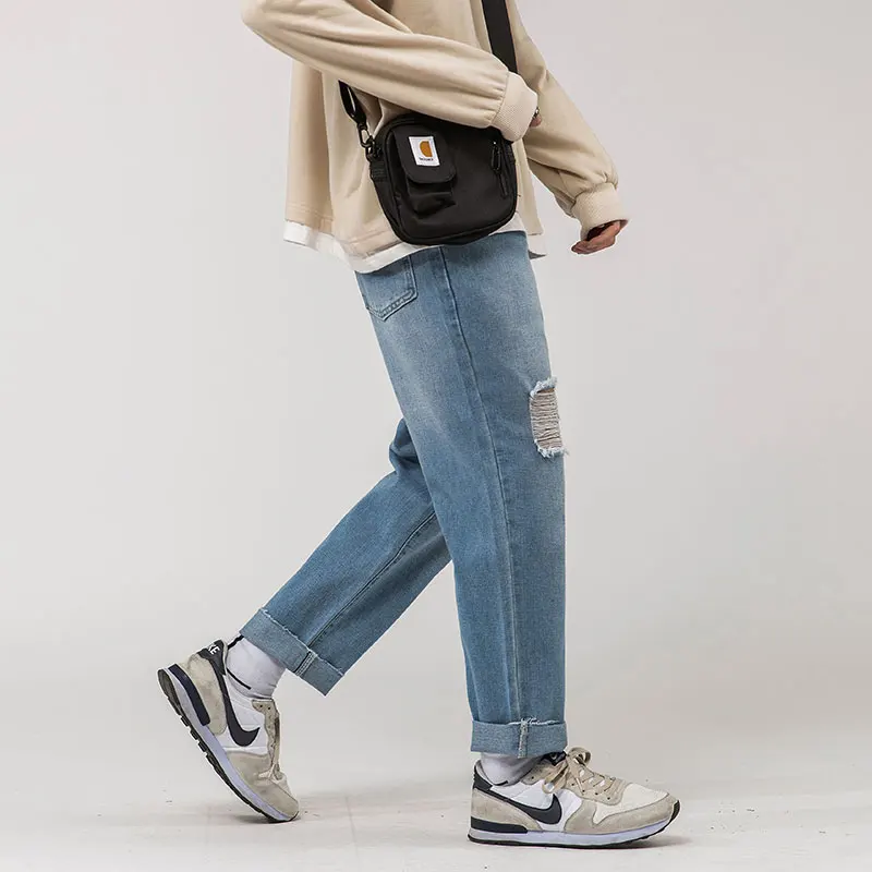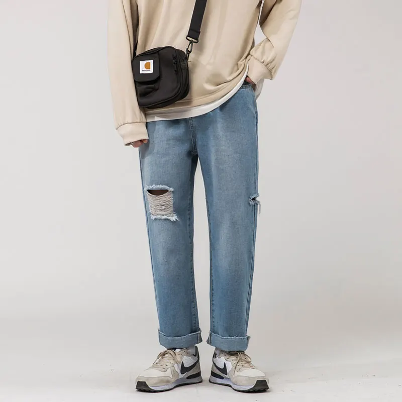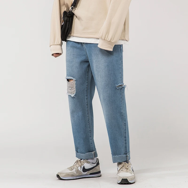 2020 мужские стиральная отверстия тянущиеся Узкие повседневные штаны Голубой цвет карго штаны с карманами Джинсы мужские байкерские джинсовые штаны размера плюс S-2XL