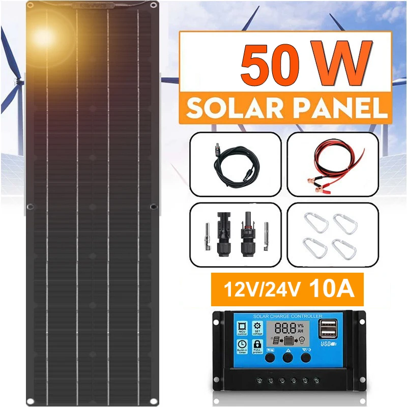 Солнечная панель батарея 12v 50 Вт солнечные панели Гибкая моно солнечная батарея PV модуль зарядное устройство 5 в USB для телефона портативное зарядное устройство для автомобиля лодки фургона кемпинга рыбалки