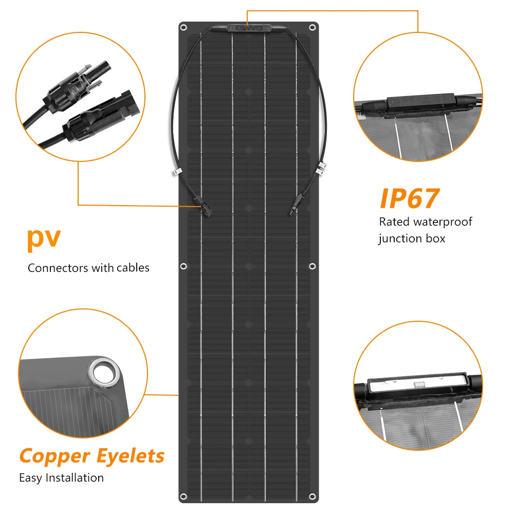 A. Простота в использовании: Полугибкие панели могут быть установлены на неровных поверхностях, таких как крыши RV, лодки, палатки, сводчатые крыши и т. Д. До 25-30 градусов. B. Он имеет высокую эффективность, светильник вес, легко повесить, разобрать и носить с собой. C. Простота установки: металлические отверстия в четырех углах изделия для фиксации винтов и крепления. Каждая солнечная панель была протестирована несколько раз. D. С контроллером заряда может заряжать батареи 12 В E. Быстрая местная доставка в Испании, Бельгии, Чехии,