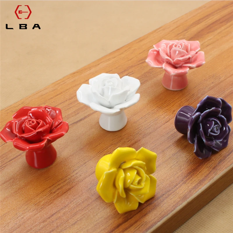 Керамические дверные ручки LBA Rose, диаметр 40 мм, ручки для смыва ящика, ручки для шкафа с одним отверстием, ручки для шкафа с мебельной ручкой Ccrew