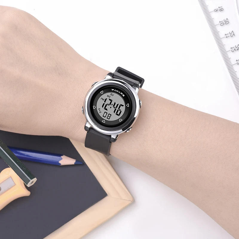Часы электронные для мальчиков и девочек, водонепроницаемые, 5 АТМ, с подсветкой и будильником