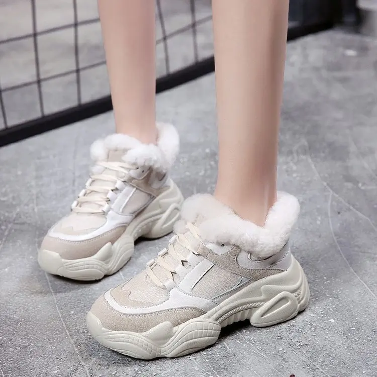 FujinЖенская обувь на плоской платформе; Зимние плюшевые меховые теплые кроссовки на платформе; Теплая удобная повседневная обувь на шнуровке; Сезон зима