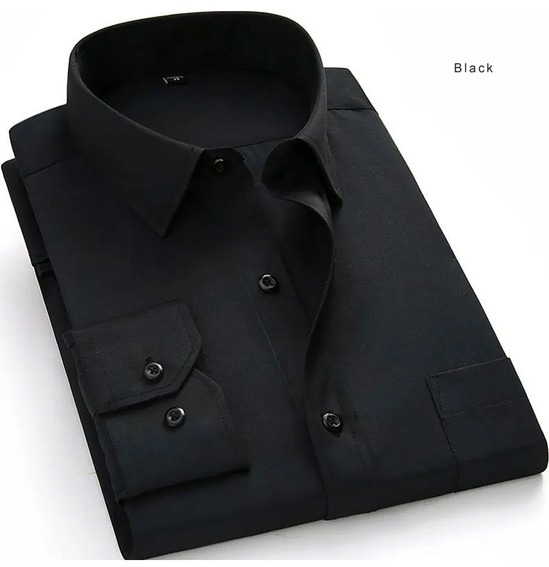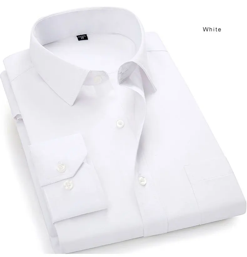 Мужская деловая рубашка с длинным рукавом, однотонная Классическая рубашка